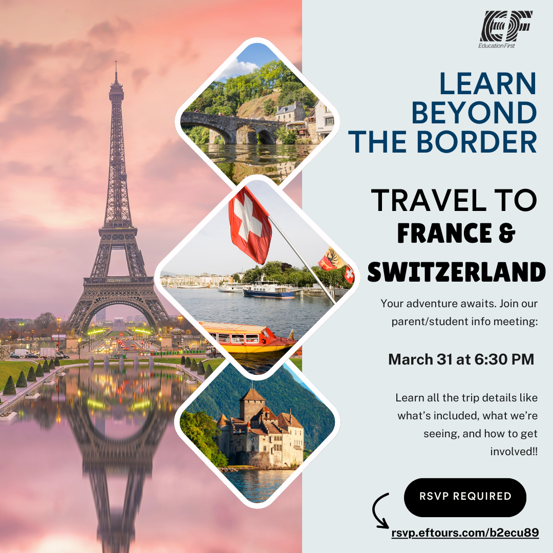 RSVP here: https://rsvp.eftours.com/b2ecu89 to attend the meeting on Tuesday, March 31 at 6:30pm in the Little Theater to get all of the details and enroll to be a part of this trip!